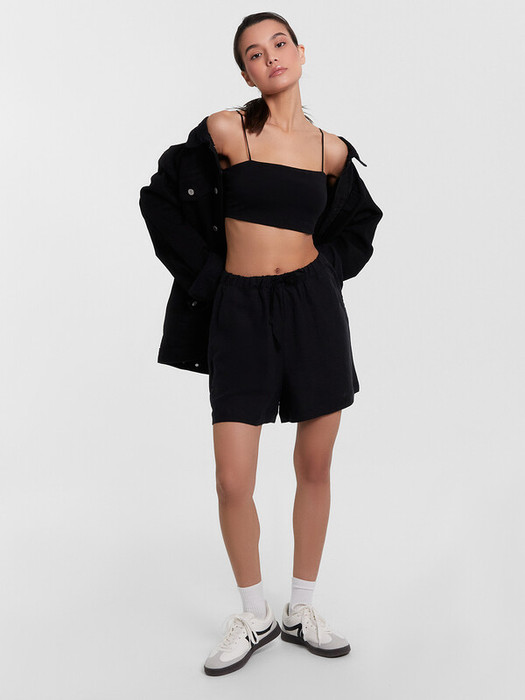 Шорты женские свободного силуэта из ткани. На детали переда карманы с отрезным бочком.