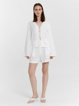 Шорты 132359-1 на поясе пробиты петли и вставлен шнур круглый двойной с термоусаживаемой трубкой на конце.