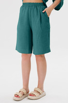 Шорты 132359-1 на поясе пробиты петли и вставлен шнур круглый двойной с термоусаживаемой трубкой на конце.