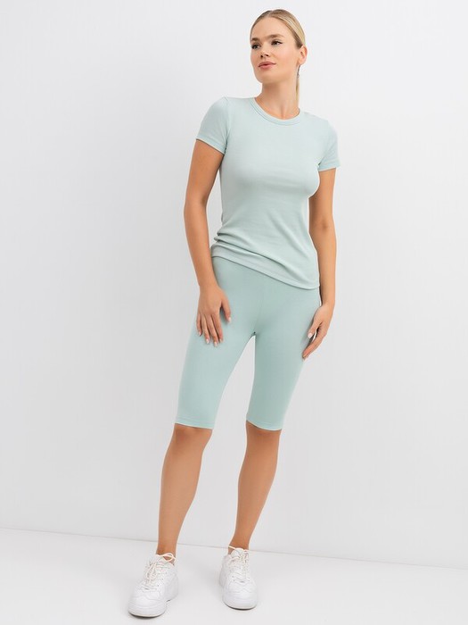 Отличные спортивные шорты. В составе полотна – натуральный хлопок и немного эластана. Длина до колена, силуэт прилегающий. Завышенная линия талии и широкий эластичный пояс дарят комфорт даже во время интенсивных занятий.