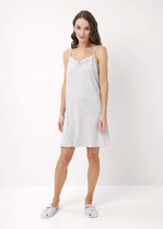 Очаровательная ночная сорочка из нежной вискозы. Длина мини, полуприлегающий силуэт, v-образный вырез горловины с декоративной кружевной отделкой, изящные бретели-спагетти... В такой сорочке сны будут исключительно приятными!