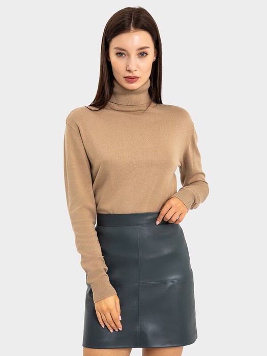 Свободный женский свитер из натурального дышащего хлопка и полиакрилонитрила – гипоаллергенного, легкого, термостойкого и долговечного материала. Длина до середины бедра или чуть ниже. Рукава длинные. Широкий воротник-стойка. Стильный свитер!