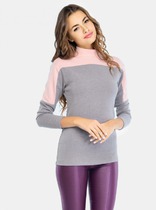 Свитшот прямого силуэта, свободный. Горловина круглой формы с обтачкой из рибаны. Рукава втачные длинные с отрезными манжетами из рибаны. Плечо спущено. По низу свитшота отрезной пояс из рибани и декоративная деталь из ткани имитирующая низ рубашки. Декоративная деталь по переду с застежкой на петли и пуговицы (на 4 прокола, d 10мм). Нижний срез фигурный.