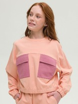 Жакет свободного кроя. Боковые швы к низу перенесены вперед. Круглый вырез горловины. В горловину втачан воротник-стойка из рибаны. Плечо спущено, пройма углубленна. Рукава втачные, длинные. По низу рукавов манжеты из рибаны. В боковых швах карманы . По низу изделия отрезной пояс из рибаны.
