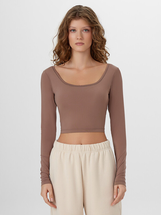 Укороченный крой с аккуратной горловиной, оформленной бейкой из основного полотна, придает этому джемперу для занятий спортом стильный современный вид. Длинные рукава и продуманная подкладка обеспечивают комфорт при интенсивных тренировках, а эластичная тесьма по нижнему срезу гарантирует надежную фиксацию.
