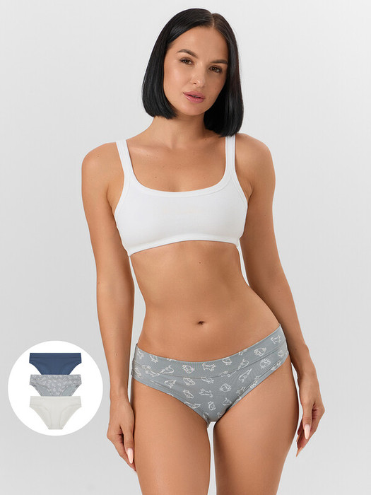 Набор женских трусиков слипов (3 шт.) разных цветов из высококачественного хлопка. Трусы женские слипы хлопковые или, как их еще называют, слип-бикини — это популярная модель женского белья. Невероятно удобные, благодаря своей невысокой посадке, они пользуются заслуженной любовью покупательниц. Изготовлены из натурального материала — дышащего, мягкого, гипоаллергенного. Помимо длительного и полного ощущения комфорта, материал отличается долговечностью. Продуманная анатомическая конструкция, плоские швы и деликатные резиночки делают эту модель подходящей для занятий спортом. Пригодятся и будущим мамам: низкая талия трусиков удобно помещается под растущим животиком и абсолютно не давит. Рекомендуем!