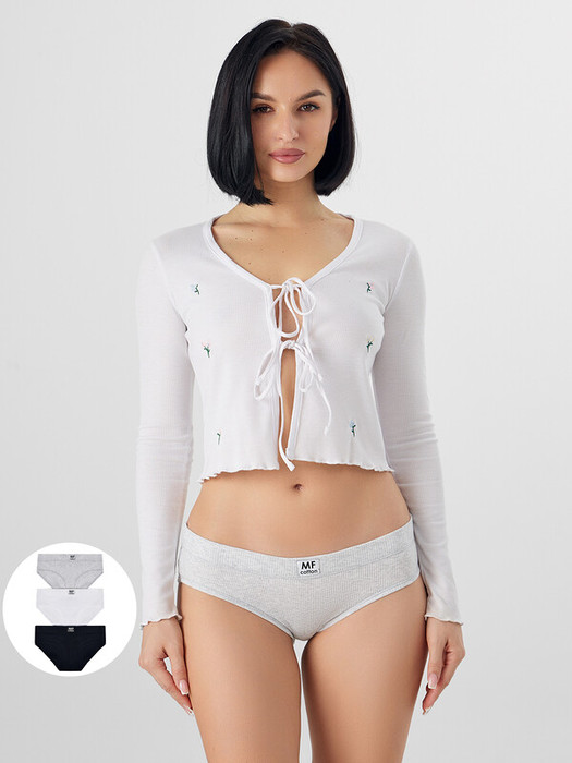 Трусы женские, средняя линия  талии, силуэт - слипы. Передняя и задняя детали выполнены из рибаны. Верхний срез трусов обработан бейкой поперечной из рибаны, внутри жилка 6мм. Нижние срезы обработаны бейками поперечными из рибаны. Подкладка ластовицы из хлопка, отлетная по верхнему срезу.
