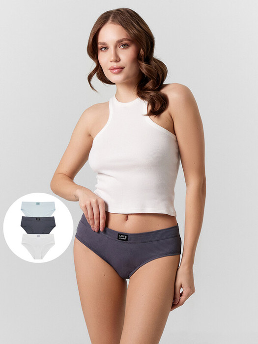Трусы женские, средняя линия  талии, силуэт - слипы. Передняя и задняя детали выполнены из рибаны. Верхний срез трусов обработан бейкой поперечной из рибаны, внутри жилка 6мм. Нижние срезы обработаны бейками поперечными из рибаны. Подкладка ластовицы из хлопка, отлетная по верхнему срезу.