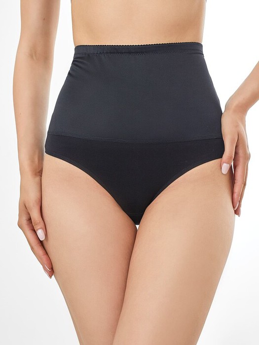 Корректирующие трусики с высокой посадкой. Деликатно утягивают проблемные зоны, формируя элегантный женственный силуэт. Нижняя часть модели выполнена из натурального хлопкового полотна, верхняя – из полотна эластик. На поясе – эластичная тесьма, по ножкам – бейка. Базовая расцветка – рекомендуем!