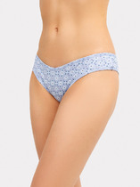 Трусы женские бразилиано с  высокой посадкой из кружевного полотна. Передняя деталь цельнокроенная с ластовицей, подкладка ластовицы из кулирной глади настрочная  по верхнему краю. Талия и ножки обработаны  в два приема жилкой.