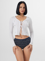 Трусы женские, средняя линия талии, силуэт-слипы. Передняя и задняя детали выполнены из интерлока. Подкладка ластовицы выполнена из кулирки, отлетная по переднему срезу. Боковые протяжки трусов выполнены из декоративной тесьмы.