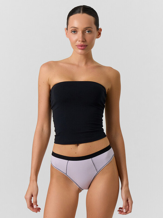 Трусы женские со средней линией талии силуэта «слип» из трикотажного полотна рибана. Передняя деталь  с  рельефами, по которым проложены  декоративные строчки. Ластовица из кулирной глади отлетная по переднему срезу.