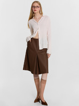 Юбка А-силуэта, длиной миди. По переду заложена складка. По бокам обработаны карманы-хулиганы, подкладка из подкладочной ткани. Верхний срез обработан обтачкой. Задняя часть с центральным швом и застежкой на молнию (металл №5). На задних половинках застрочены вытачки. Нижний срез подклеен.