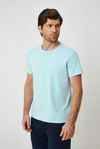 Нижние срезы футболки и рукавов обработаны швом вподгибку.