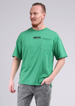 Футболка свободная укороченная, оверсайз. Горловина округлой формы обработана обтачкой из рибаны. Рукава втачные, корткие. Линия плеча спущена. На детали переда накладной карман (мод 111899-1). Нижние срезы футболки и рукавов обработаны швом вподгибку.
