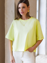 Нижние срезы футболки и рукавов обработаны швом вподгибку.