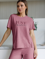 Vilatte Футболка из премиального хлопка с авторским принтом D49.007 темно-розовы