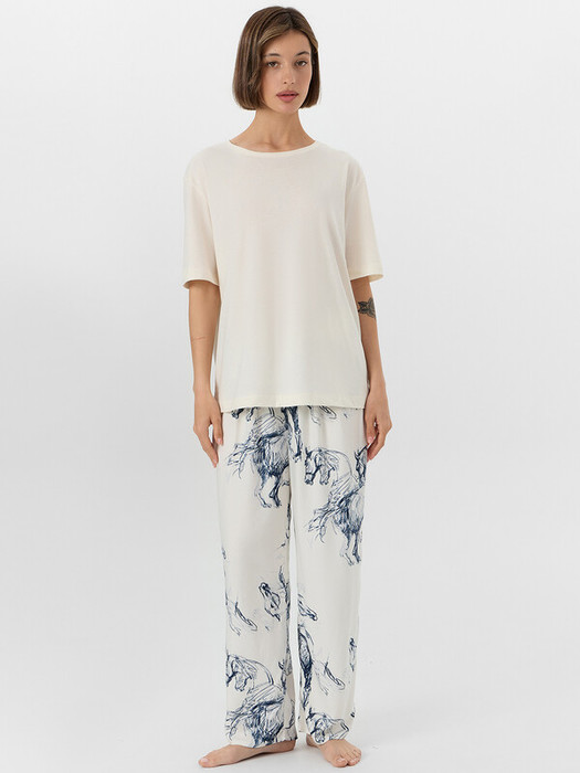 Совместные покупки Симферополь Женская одежда Пижамы, халаты — Mark FormelleКОМПЛЕКТ ЖЕНСКИЙ (ФУТБОЛКА, БРИДЖИ) 592541 592541 молочный +лошади