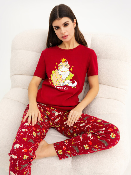 Милая пижама женская из высококачественного хлопка. Футболка свободного силуэта, с круглой горловиной и короткими рукавами. Свободные брюки длиной до косточки с классической линией талии и эластичной тесьмой в поясе. Комфортный комплект женский для сна и домашних дел, в нем уютно и комфортно. Идеальный вариант на каждый день. Широкая размерная сетка, есть модели plus-size, в линейке много базовых и других милых расцветок пижам. Рекомендуем пижаму женскую для сна, отдыха и домашних дел!