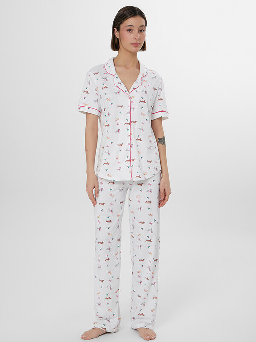 Совместные покупки Симферополь Женская одежда Пижамы, халаты — Mark FormelleКОМПЛЕКТ ЖЕНСКИЙ (ЖАКЕТ, БРЮКИ) 592523-1 592523-1 собачки на белом