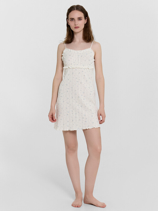Сорочка полуприлегающего силуэта, длина выше колена. Горловина U-образной формы. Лиф отрезной, присборен, внутри жилка тканая, края обработаны на микрооверлоке. Бретель - бейка из основного полотна в 4 сложения. Спинка цельнокроеная. Низ сорочки обработан на микрооверлоке.