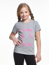Майка из хлопкового трикотажа, декорированная ярким принтом с пайетками. Свободный крой, круглый вырез горловины.На ребенке представлен размер 110:- Ширина изделия по линии груди 29,5 см- Ширина по низу изделия 40 см- Длина изделия 40 смРазница между размерами составляет 1,5 см.