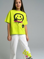 Трикотажная майка, декорированная ярким принтом деталями из пайеток. Свободный крой, круглый вырез горловины, спинка "борцовка".На ребенке представлен размер 110:- Ширина изделия по линии груди 29,5 см- Ширина по низу изделия 41 см- Длина изделия 40,4 смРазница между размерами составляет 1,5 см.