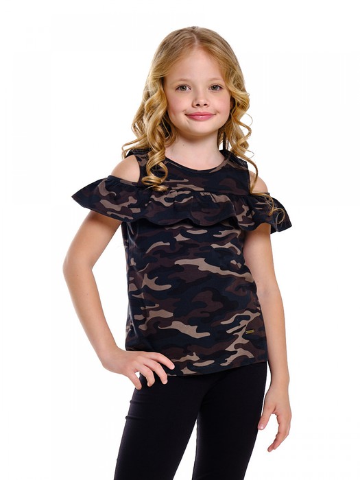 Mini Maxi Футболка для девочки (98-122см) UD 4698-1(2) хаки камуфляж