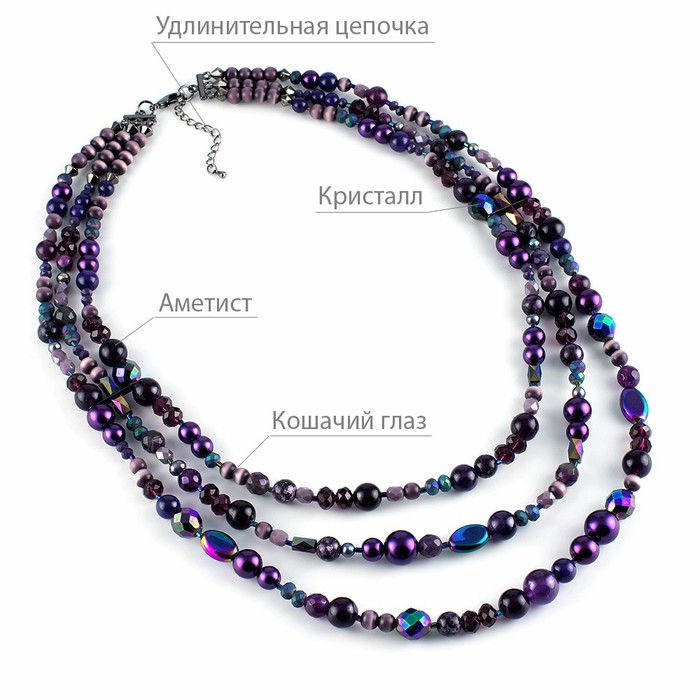 Совместные покупки Симферополь Ювелирные украшения и бижутерия Цепи, колье, ожерелья — Многоярусное колье Роман с камнем Тропикана из аметиста, жемчуга Majorca. - Бижу