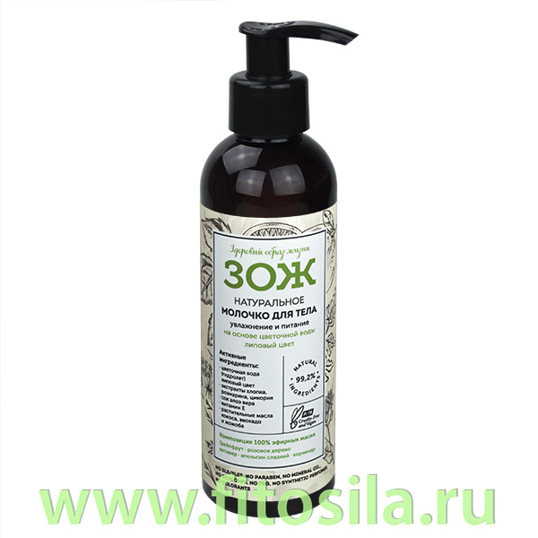 Молочко для тела увлажнение и питание "ЗОЖ" создан на основе цветочной воды липового цвета.