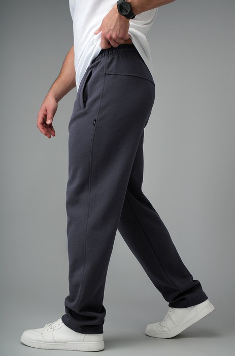 Прямые трикотажные брюки с лаконичным кроем и скрытым шнурком в поясе — это про удобство без компромиссов. Карманы добавляют практичности, а свободная посадка позволяет двигаться без ограничений. То, что нужно для бега, активного отдыха или неспешных дел в городе. Однотонные темно-серые спортивки незаменимы в летних образах. Трико для мужчин подойдут для весны.