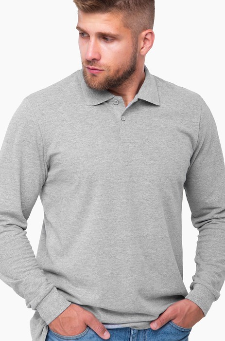 Светло-серый лонгслив поло — лаконичный фаворит мужского гардероба, который всегда к месту. Идеальный баланс между комфортом и стильным минимализмом для повседневных образов.