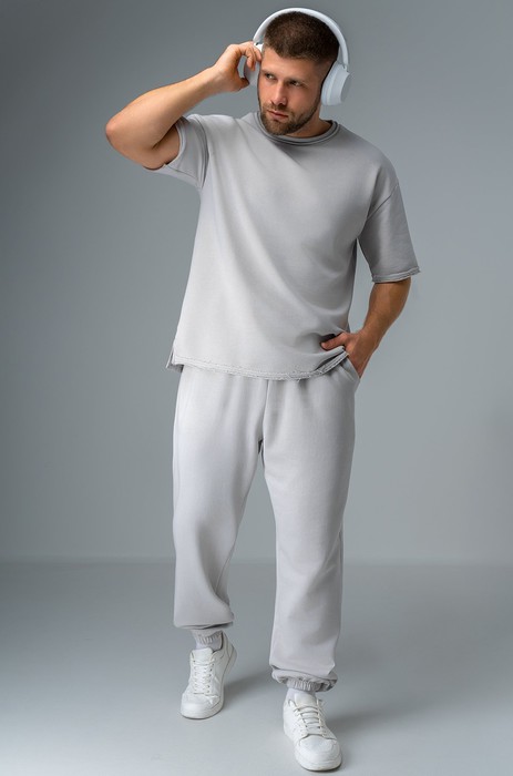 Мужской спортивный костюм с брюками — прекрасный спутник для активного отдыха. Однотонный серый костюм выполнен из 100% хлопкового футера, который обеспечивает удобство и дышащие свойства, что делает его идеальным выбором для тренировок и повседневного ношения. Натуральный хлопок гарантирует мягкость и комфорт, позволяя чувствовать себя на высоте каждый день.