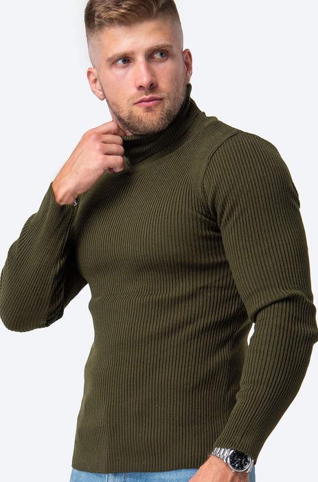 Стильная зеленая водолазка с высоким воротником для мужчин выполнена из вязаного трикотажа: в ней будет уютно и тепло в прохладную погоду. Шерстяной джемпер в рубчик из мягкой пряжи с акрилом не колется, он невероятно мягкий и приятный к телу. Благодаря фактурной вязке теплая водолазка хорошо тянется.