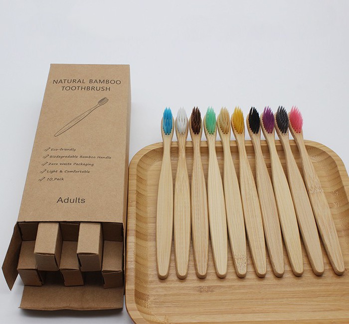 Набор деревянных бамбуковых эко-щеток 10 шт. в коробке