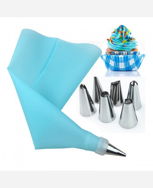 Набор состоит из многоразового кондитерского мешка, 6 металлических насадок, пластикового переходника. Насадки имеют разное сечение и профиль. С их помощью украсить торт можно различными способами. Мешок, изготовленный из полиэстера, предназначен для помещения разных кремов, в основном служащих для украшения кондитерских изделий.