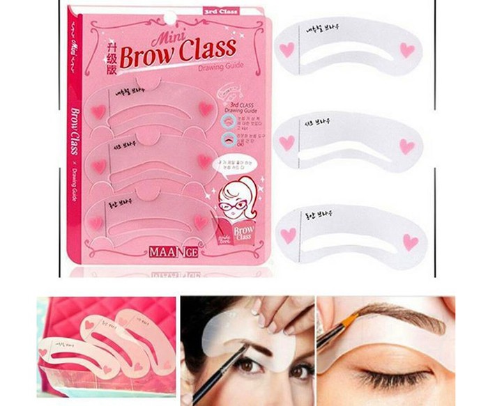 Значительно упрощают создание макияжаВ комплект входят 3 трафарета для придания необходимой формы бровям. Идеально подойдет для тех, кто ухаживает за бровями в домашних условиях. Совет по применению: припудрить брови, наложить трафарет, темными тенями или карандашом для бровей очертить контур. Для придания яркости зафиксировать брови нанесением геля. Те волоски, которые в контур не вписались, необходимо выщипать.