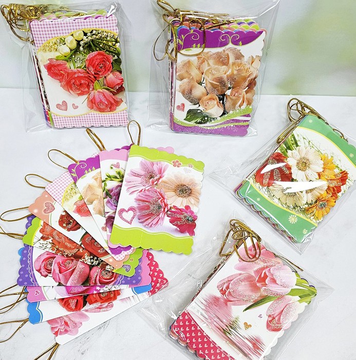 Набор открыток-подвесок 10 штук "Цветы" с блестками, размер 9*7 см.