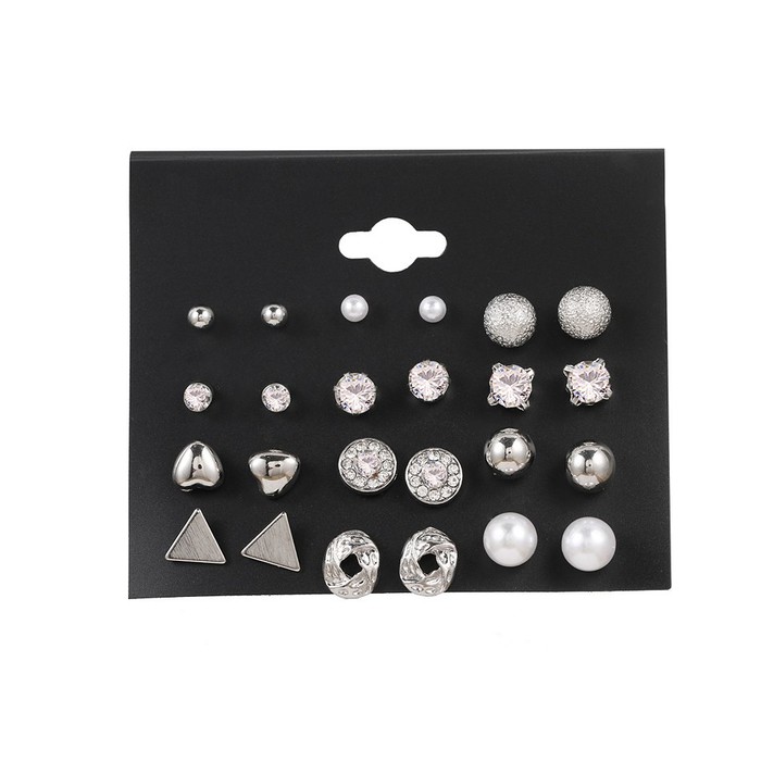 Совместные покупки Симферополь Косметика и парфюмерия Прочий макияж — Набор сережек-гвоздиков 12 пар. Цвет: Серебро