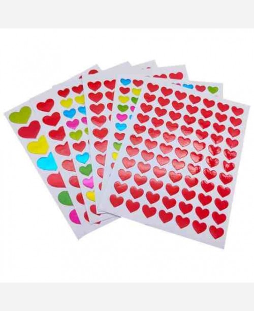 Набор наклеек состоит из 10 листов размером 15.8*11.5 см, на каждом из которых имеется от 28 до 104 наклеек в форме сердца разных размеров и цветов. Итого, в наборе имеется около 600 наклеек (в зависимости от комплектации).