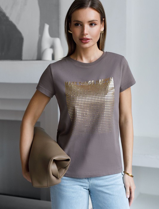— Нарядная футболка с блестящим принтом фольгой