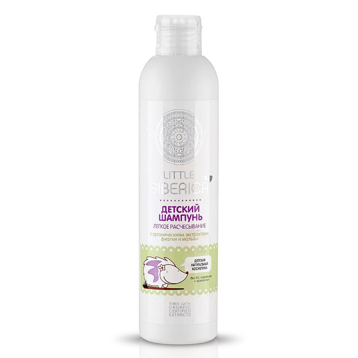 Содержит органические экстракты фиалки и мальвы. Детский шампунь бережно очищает и не спутывает мягкие детские волосы.