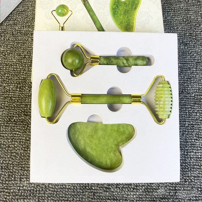 Совместные покупки Симферополь Косметика и парфюмерия Прочий макияж — Нефритовый набор для массажа Гуаша 3 предмета (2 ролика + скребок)