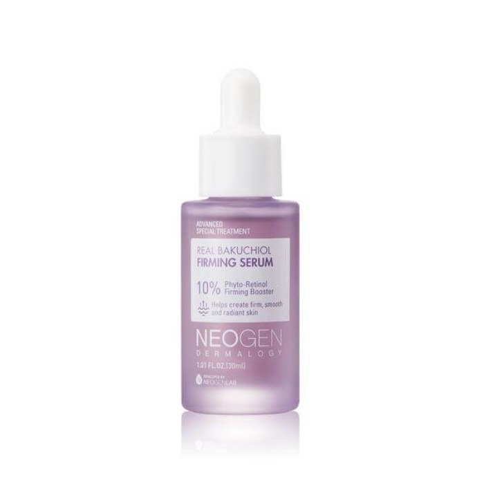 Ферментированная cыворотка с бакучиолом Neogen Dermalogy Real Bakuchiol Firming Serum делает кожу плотной и упругой, уменьшает глубину морщин и подтягивает овал. Замедляет процессы старения, укрепляет тургор кожи, препятствует появлению дряблости и обвисания. Сыворотка увлажняет кожу и поддерживает оптимальный водно-липидный баланс, препятствует появлению обезвоженности. Разглаживает рельеф лица, выравнивает тон, снимает тусклость и покраснения. Укрепляет защитный барьер, оберегает кожу от агрессивного воздействия свободных радикалов.Главным действующим ингредиентом сыворотки является бакучиол — растительный аналог ретинола, который подходит даже для чувствительной кожи. Эффективно осветляет застойные пятна на коже, устраняет нежелательную пигментацию, препятствует появлению акне.Сыворотка обладает легкой гелевой текстурой, приятно ложится на кожу и быстро впитывается. Дополнительные действующие ингредиенты:Гиалуронат натрия — низкомолекулярная форма гиалуроновой кислоты. Проникает в глубокие слои эпидермиса, активно увлажняет клетки, способствует удержанию влаги в коже. Образует защитный слой, который не дает влаге испаритьсяГвайазулен оказывает противовоспалительное, антиоксидантное действие, стимулирует регенеративные процессы. Снимает покраснения и отечность.Комплекс пептидов нормализует выработку коллагена и эластина, разглаживает кожу, выравнивает рельеф. Улучшает цвет кожи, придает ей здоровое сияние и упругость.Аскорбиновая кислота обладает выраженным антиоксидантным действием, эффективно защищает кожу от повреждений ультрафиолетовым излучением, инициирует выработку собственного коллагена, способствует повышению эластичности и упругости.Масло лаванды обладает антисептическими, заживляющими свойствами, успокаивает кожу, помогает бороться с воспалениями и шелушениями.Экстракт алоэ оказывает заживляющее и противомикробное воздействие, успокаивает раздраженную кожу. Глубоко увлажняет и насыщает клетки полезными витаминами, укрепляет защитный барьер.Подходит для всех типов кожи.Способ применения: равномерно нанесите сыворотку на кожу после этапов очищения и тонизирования.Объем: 30 мл
