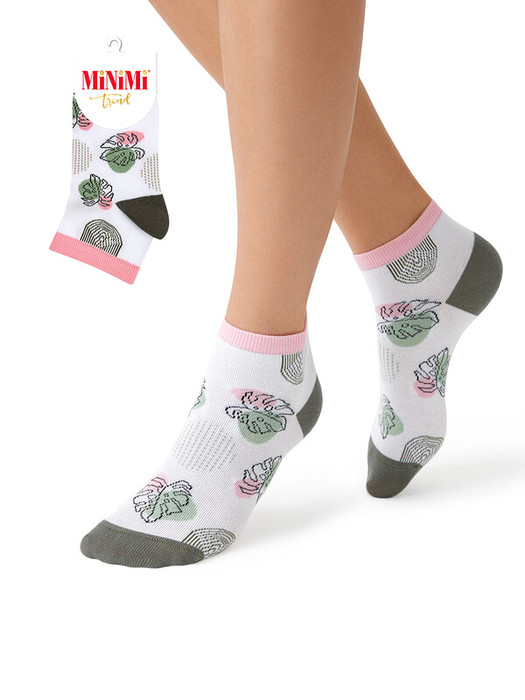 Женские всесезонные носки MiNiMi с трендовым растительным принтом. Изготовлены из высококачественного хлопка, который позволяет коже дышать, впитывает влагу и приятен на ощупь. Добавление волокон эластана в состав способствует идеальному облеганию.  Удобная резинка  и кеттельный (плоский) шов на мыске обеспечивают оптимальный комфорт.