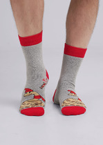 Мужские носки с красочным новогодним рисунком. Изготовлены из высококачественного мягкого хлопка, который превосходно пропускает воздух, приятно ощущается на теле и походит для чувствительной кожи.
