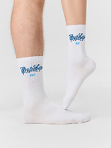 Принт или надпись изображены сбоку на резинке и на передней части носка над мыском