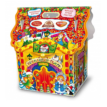 Сладкий набор «Терем-Теремок» - два подарка в одном! Целых 800 г отборных конфет и настоящий кукольный театр! Картонная коробка разбирается и превращается в ширму-сцену, внутри – карточки с персонажами. Создайте собственную волшебную сказку вместе с детьми и наслаждайтесь любимыми конфетами.