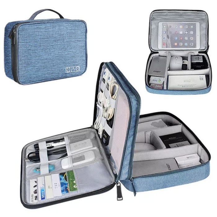 Двухуровневый, многофункциональный органайзер для проводов, флешек, гаджетов.Большой,  вместительный, очень удобный и практичный.Материал: OXFORРазмер: см.фото