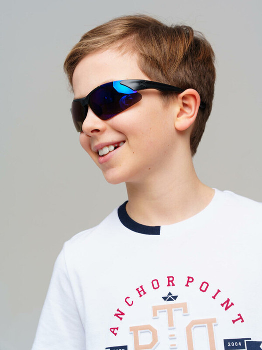 Солнцезащитные очки футуристической формы для мальчика подростка. Солнцезащитные очки с фильтром Cat3. Ширина оправы - 128 мм, длина дужки - 124 мм. Обхват головы 52-54 см. Тёмные фильтры блокируют 85% солнечных лучей такие очки эффективны для защиты глаз в тропиках, у моря и в горах. Очки транспортируются в картонной коробке. В комплект входит фирменный текстильный чехол из микрофибры, с помощью которого легко ухаживать за изделием.